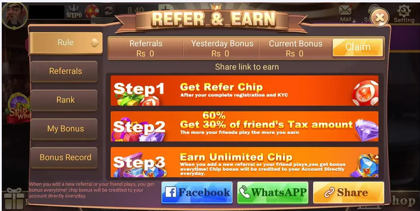 Build passive income by inviting friends to join 3 Patti Spin. The referral system rewards you with commission percentages from your friends’ gameplay activity, creating sustainable long-term earnings beyond your own gaming sessions.